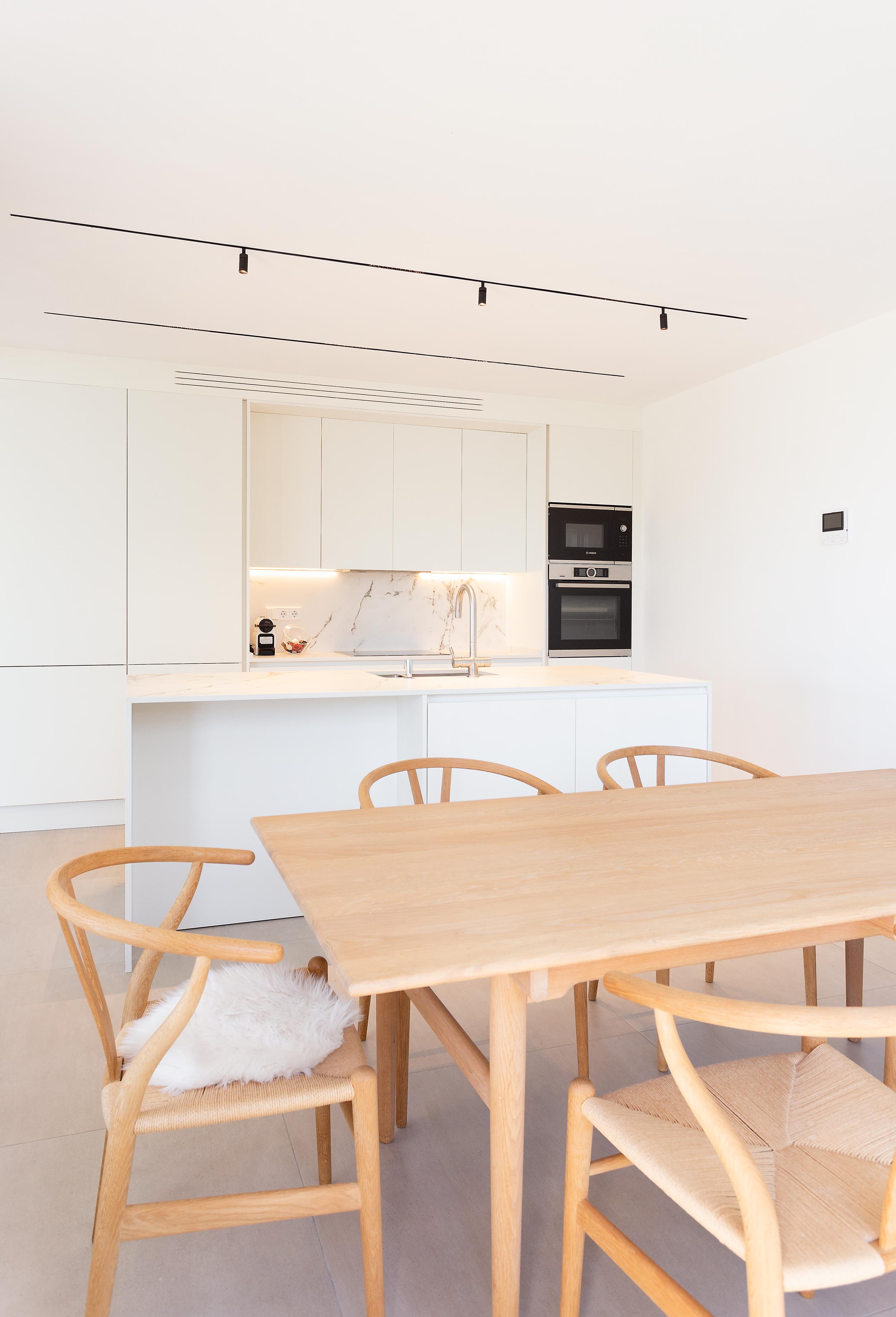 En el interior, se ha optado por una paleta de tonos neutros, con el objetivo de generar una atmósfera serena y coherente con los requerimientos del cliente en términos de armonía y equilibrio espacial.